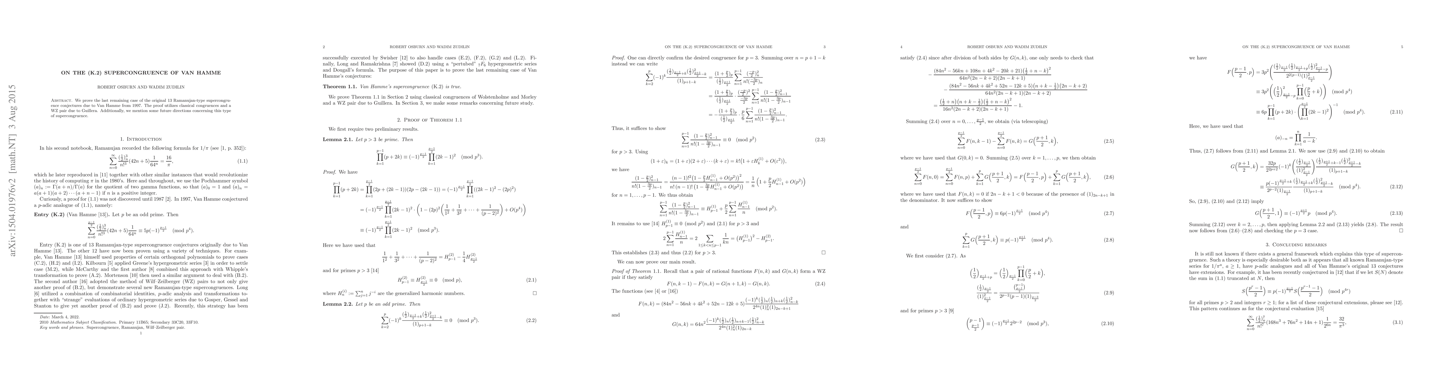 The main technical contribution is the proof of Van Hamme's supercongruence (K.2) using classical congruences and a WZ pair due to Guillera.