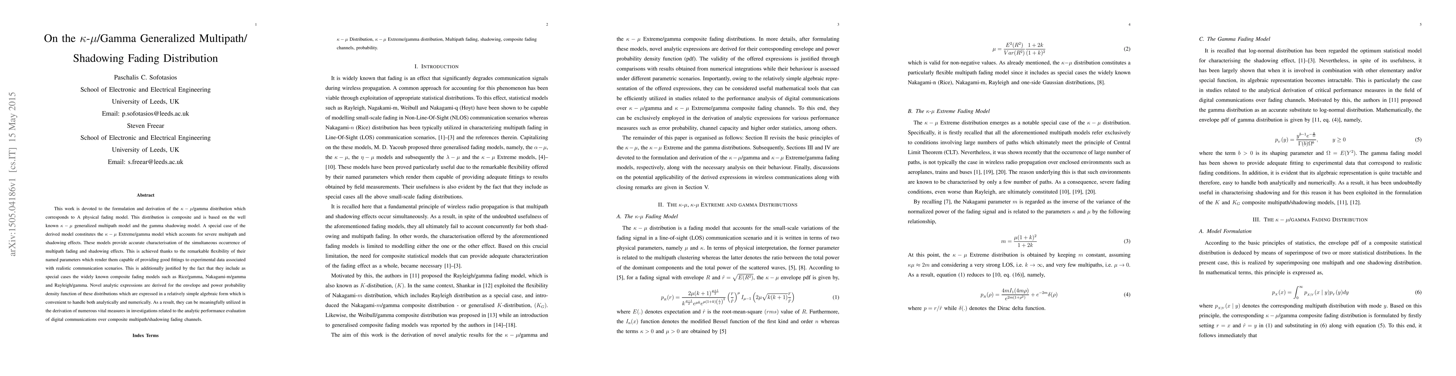 The $ ho$-$ u$/$ u$ generalized multipath/shadowing fading distribution is derived to model simultaneous multipath fading and shadowing effects, providing accurate characterization of complex communication scenarios.