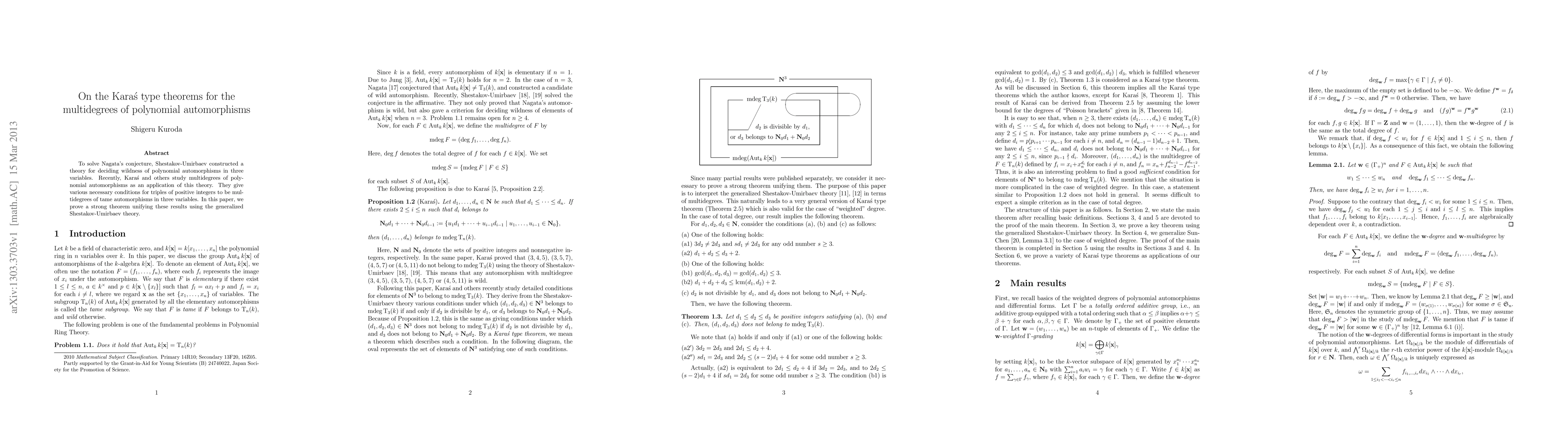To solve Nagata's conjecture, Shestakov-Umirbaev constructed a theory for deciding wildness of polynomial automorphisms in three variables. Recently, Kara\'s and others study multidegrees of polynomial automorphisms as an application of this theory. They give various necessary conditions for triples of positive integers to be multidegrees of tame automorphisms in three variables. In this paper, we prove a strong theorem unifying these results using the generalized Shestakov-Umirbaev theory.