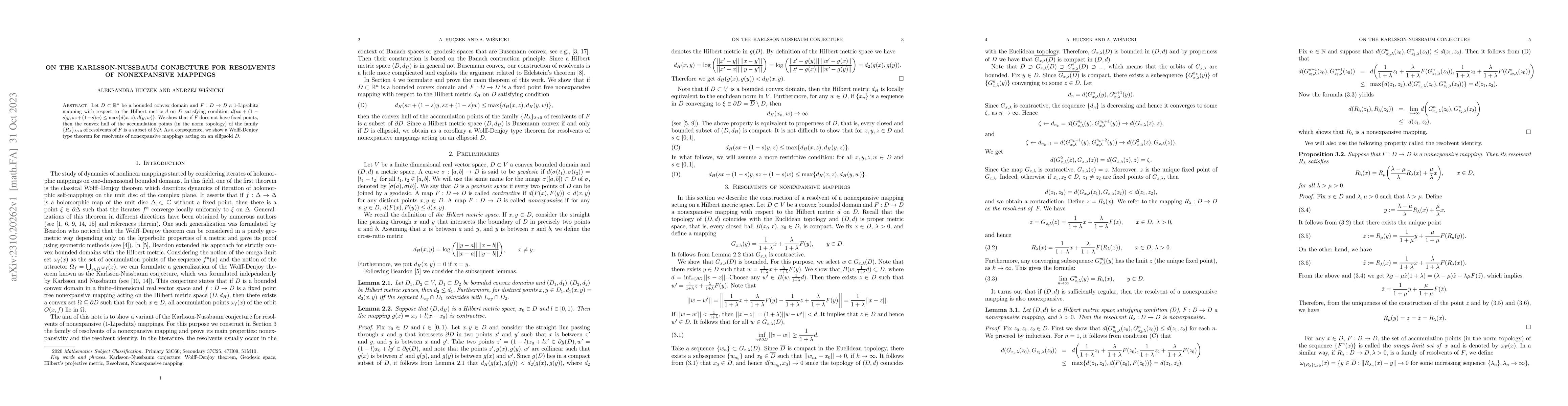 Summary: The paper proves that for a $1$-Lipschitz mapping $F$ on a bounded convex domain without fixed points, the convex hull of accumulation points of its resolvent family lies on the boundary of the domain. This leads to a Wolff-Denjoy theorem for resolvents of nonexpansive mappings on an ellipsoid.
