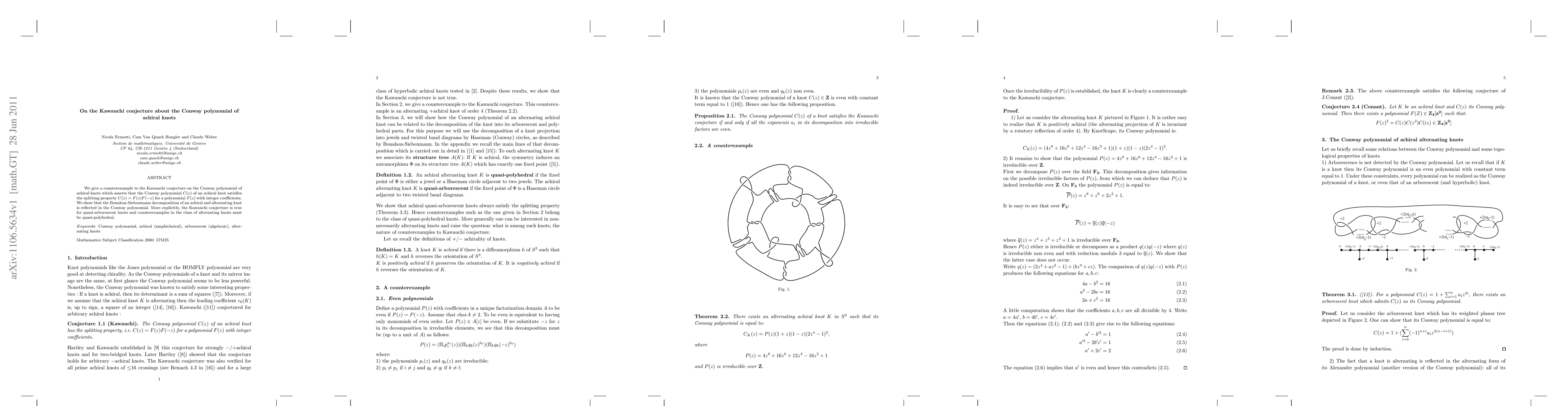 This paper refutes the Kawauchi conjecture on the Conway polynomial of achiral knots, presenting a counterexample that disproves the splitting property $C(z)=F(z)F(-z)$. It also reveals that Bonahon-Siebenmann decomposition is mirrored in the Conway polynomial, confirming the conjecture for quasi-arborescent knots while identifying quasi-polyhedral alternating knots as potential counterexamples.