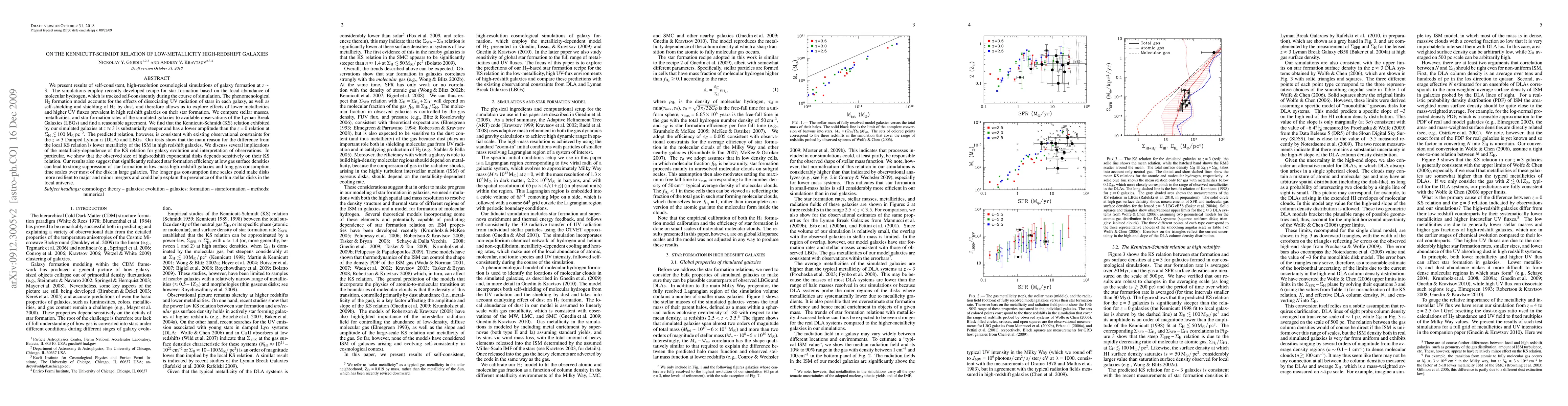 This paper uses high-resolution cosmological simulations to investigate the Kennicutt-Schmidt relation in low-metallicity, high-redshift galaxies, finding that the relation is steeper and has lower amplitude compared to local galaxies due to lower metallicity. The simulations show good agreement with observations of Lyman Break Galaxies and Damped Lyman α systems.