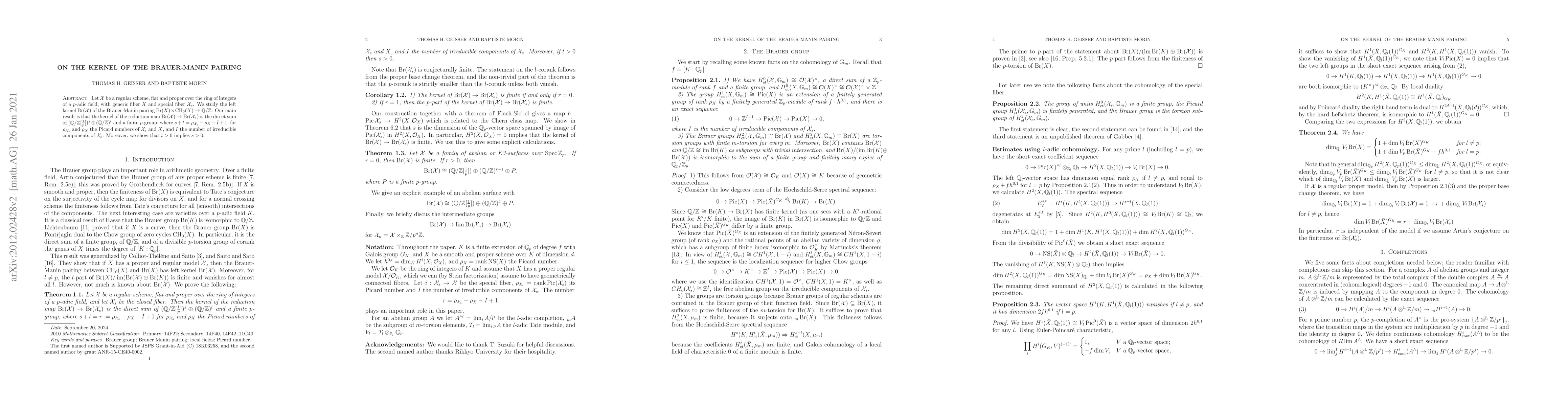 Let $\mathcal X$ be a regular scheme, flat and proper over the ring of integers of a $p$-adic field, with generic fiber $X$ and special fiber $\mathcal X_s$. We study the left kernel $Br(\mathcal X)$ of the Brauer-Manin pairing $Br(X)\times CH_0(X)\to \mathbb Q/\mathbb Z$. Our main result is that the kernel of the reduction map $Br(\mathcal X)\to Br(\mathcal X_s)$ is the direct sum of $(\mathbb Q/\mathbb Z[\frac{1}{p}])^s\oplus (\mathbb Q/\mathbb Z)^t$ and a finite $p$-group, where $s+t= \rho_{\mathcal X_s}-\rho_X-I+1$, for $\rho_{\mathcal X_s}$ and $\rho_X$ the Picard numbers of $\mathcal X_s$ and $X$, and $I$ the number of irreducible components of $\mathcal X_s$. Moreover, we show that $t>0$ implies $s>0$.