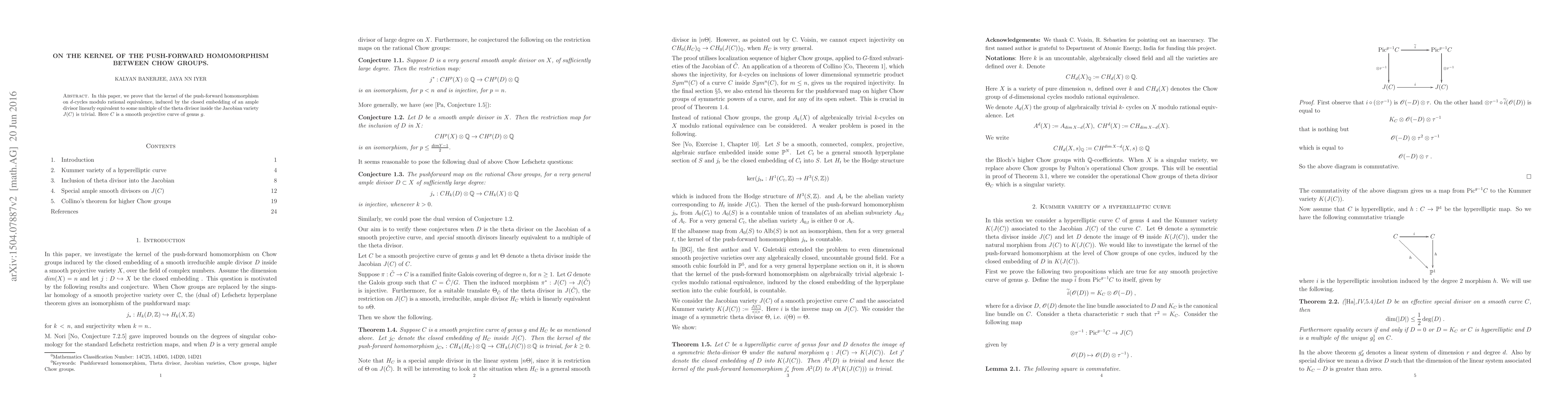 This paper proves that the kernel of the push-forward homomorphism for $d$-cycles on an ample divisor inside the Jacobian variety of a smooth projective curve $C$ is trivial. The study focuses on the specific case where the divisor is linearly equivalent to a multiple of the theta divisor.