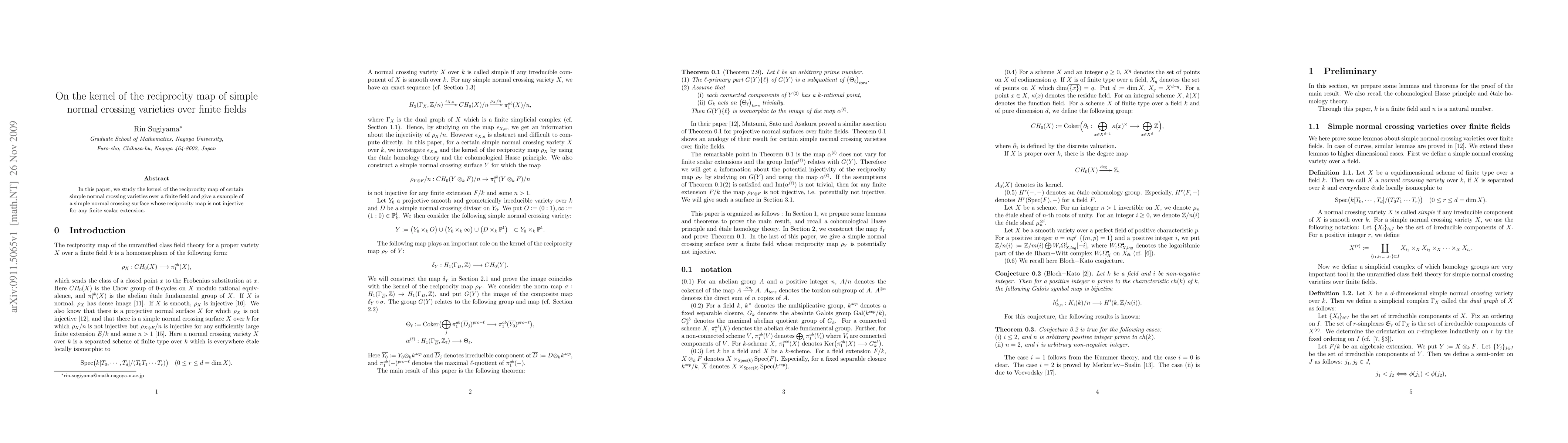 Summary: This paper investigates the kernel of the reciprocity map for simple normal crossing varieties over finite fields, providing an example of a surface where the reciprocity map fails to be injective even under finite scalar extensions.