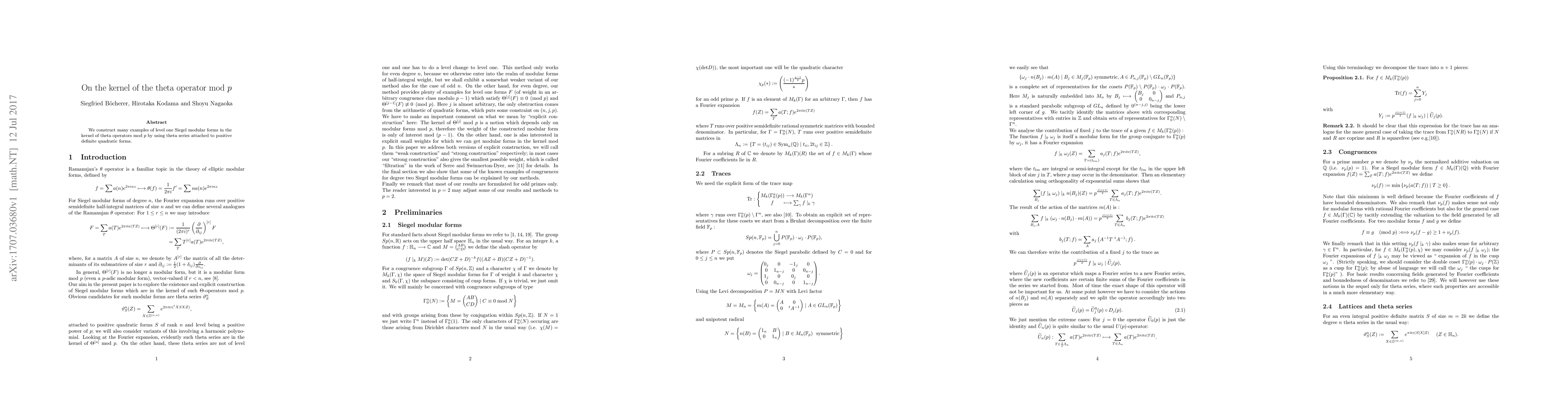 The paper presents detailed constructions and proofs for modular forms in the kernel of theta operators modulo p, along with a method to ensure the existence of suitable quadratic forms.