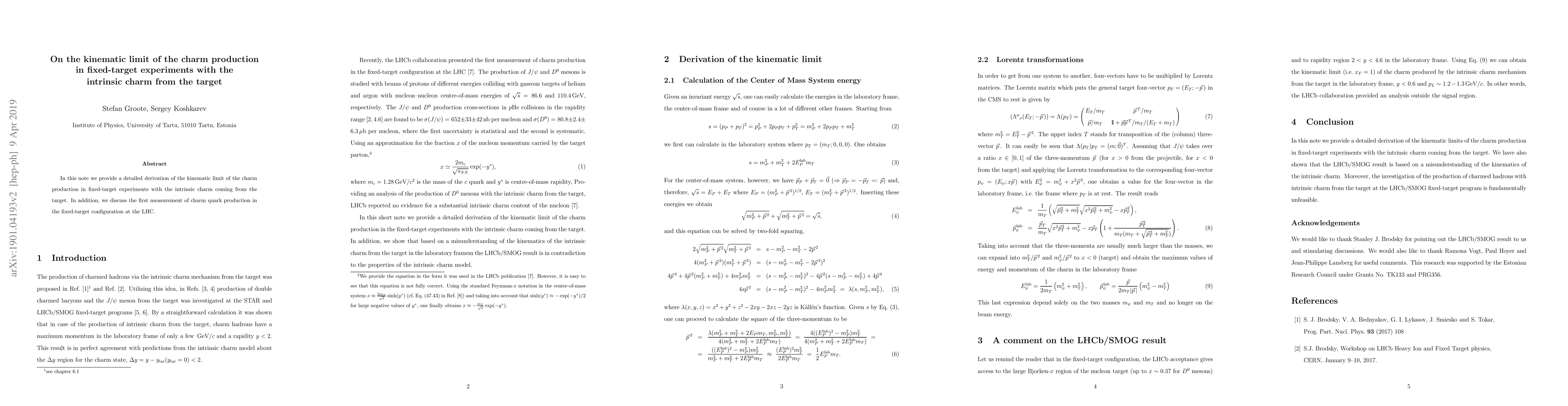 In this note we provide a detailed derivation of the kinematic limit of the charm production in fixed-target experiments with the intrinsic charm coming from the target. In addition, we discuss the first measurement of charm quark production in the fixed-target configuration at the LHC.