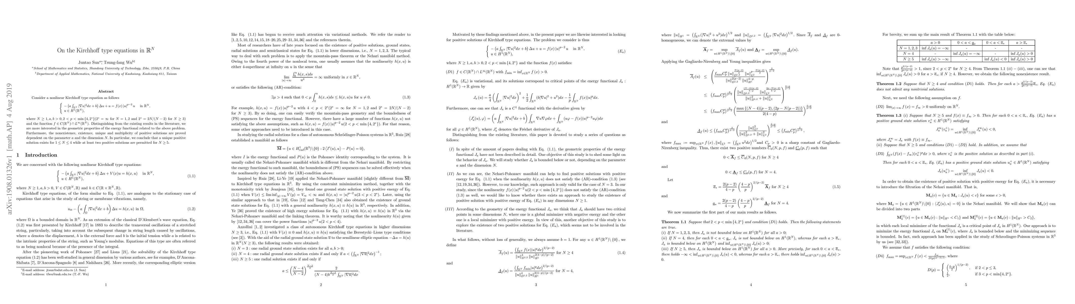 This paper investigates the existence and multiplicity of positive solutions for a nonlinear Kirchhoff type equation in $\mathbb{R}^{N}$. It focuses on the geometric properties of the associated energy functional and concludes that a unique positive solution exists for dimensions $N$ from 1 to 4, while at least two positive solutions are possible for $N\geq5$.