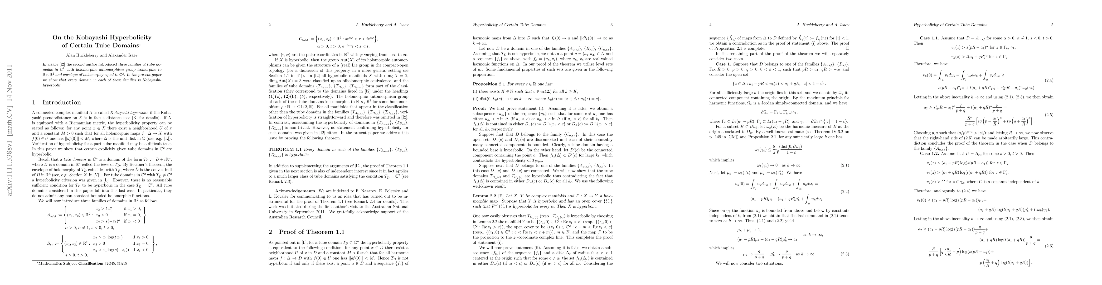 Summary: This paper demonstrates that three families of tube domains in ${\mathbf C}^2$ introduced previously by the authors are Kobayashi-hyperbolic, confirming their hyperbolic nature through their holomorphic automorphism groups and envelopes of holomorphy.