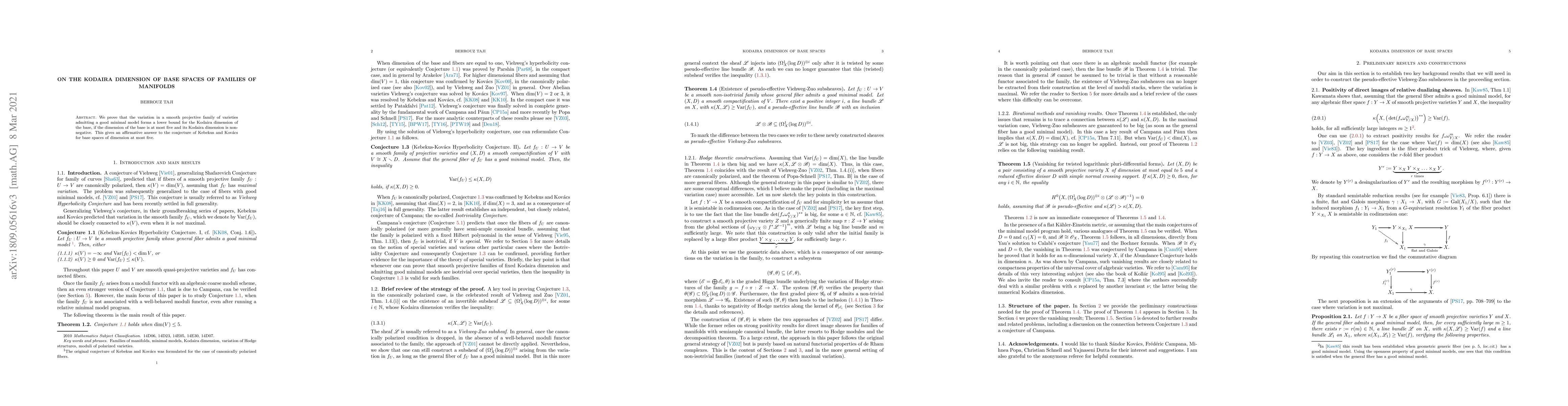 We prove that the variation in a smooth projective family of varieties admitting a good minimal model forms a lower bound for the Kodaira dimension of the base, if the dimension of the base is at most five and its Kodaira dimension is non-negative. This gives an affirmative answer to the conjecture of Kebekus and Kovacs for base spaces of dimension at most five.