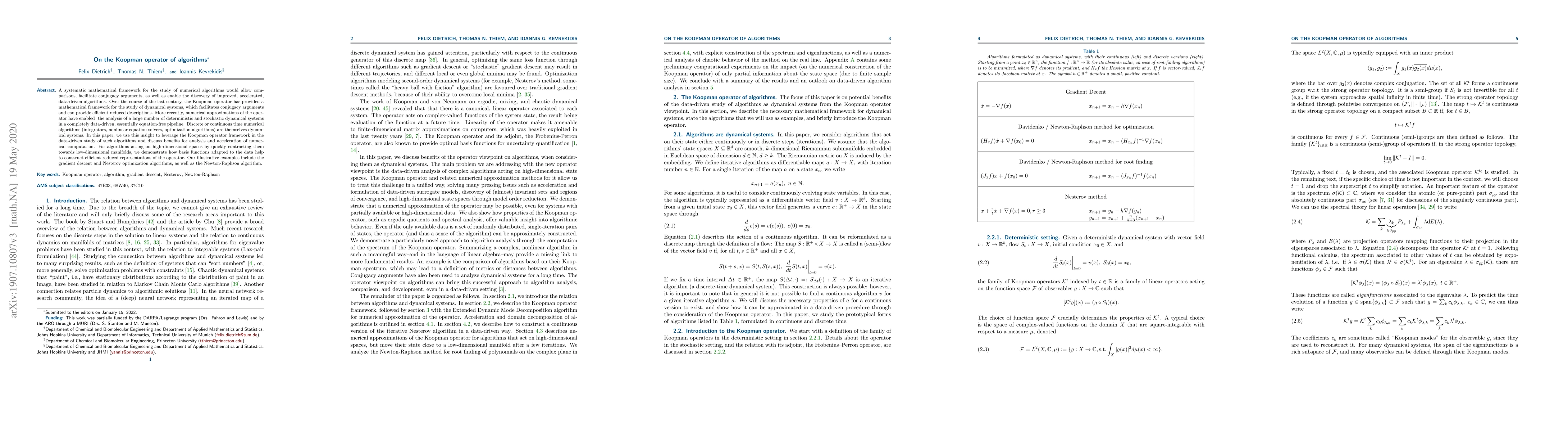 This paper explores leveraging the Koopman operator framework to analyze and accelerate numerical algorithms, demonstrating its utility in constructing efficient reduced representations for algorithms like gradient descent, Nesterov optimization, and Newton-Raphson. The study highlights the potential of data-driven approaches for algorithm analysis and improvement.