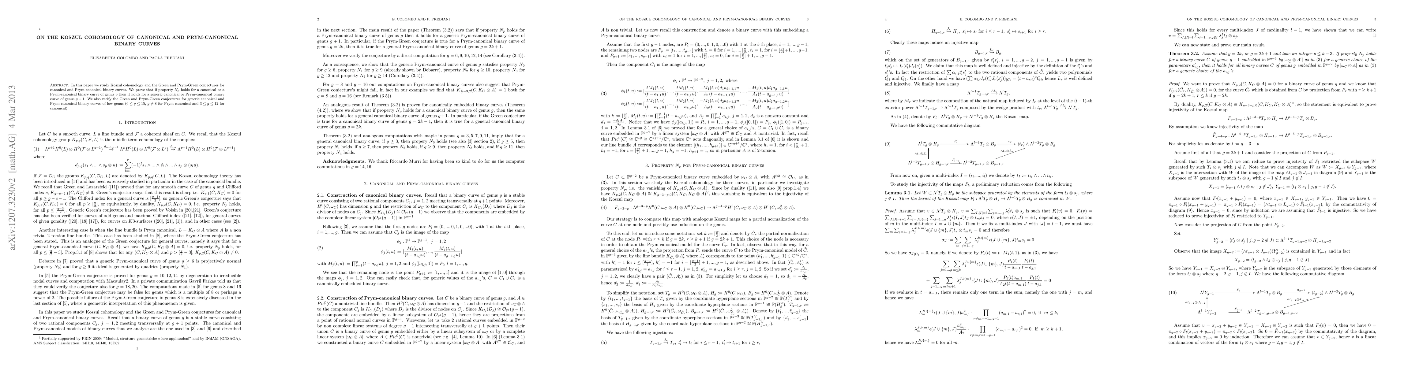 This paper investigates the Koszul cohomology and conjectures related to canonical and Prym-canonical binary curves, proving that property $N_p$ extends from genus $g$ to $g+1$ and verifying Green and Prym-Green conjectures for low genus curves.