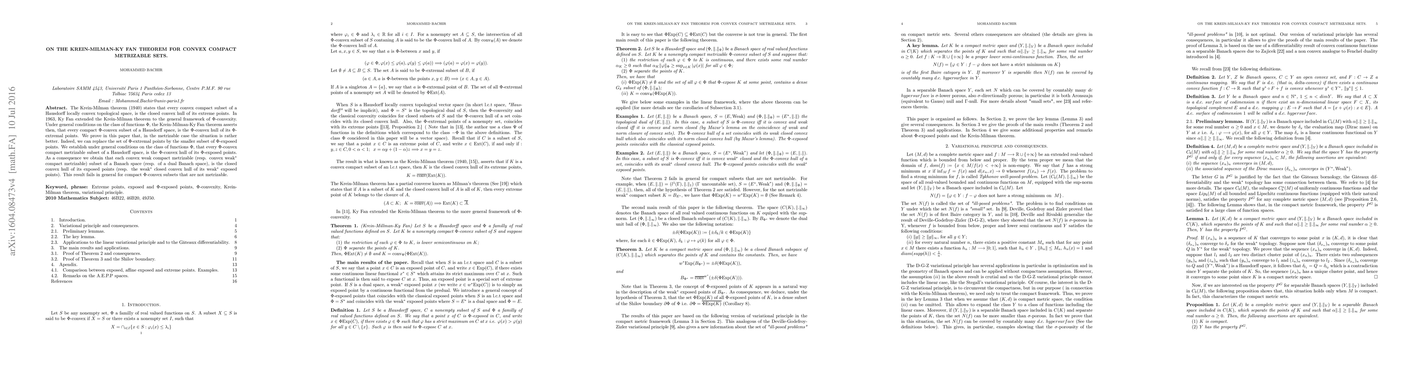 This paper proves that under metrizability conditions, every compact $\Phi$-convex subset of a Hausdorff space can be represented as the $\Phi$-convex hull of its $\Phi$-exposed points, improving upon the Krein-Milman-Ky Fan theorem. It also establishes that convex weak compact metrizable subsets of Banach spaces are the closed convex hulls of their exposed points.