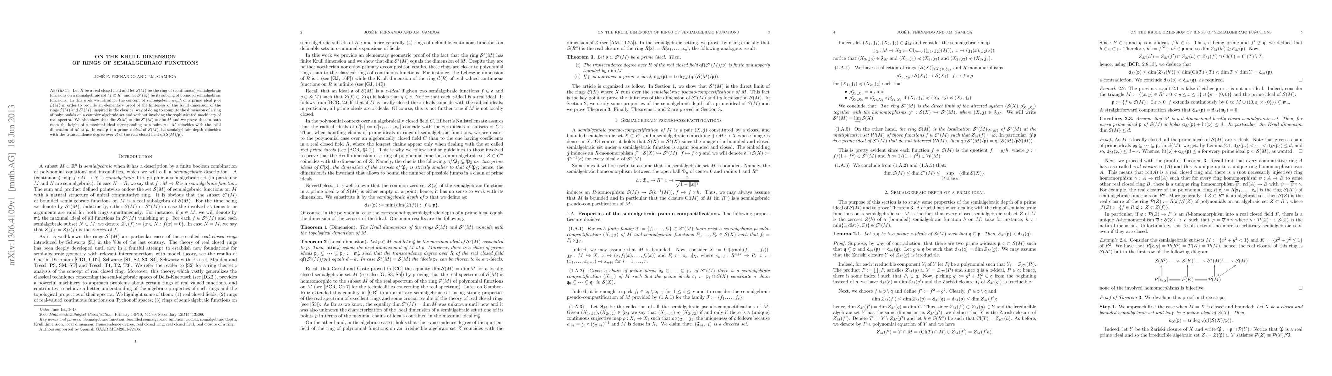 This paper introduces the concept of semialgebraic depth to provide an elementary proof of the finiteness of the Krull dimension for rings of semialgebraic functions and their bounded subrings, demonstrating that their dimensions equal the dimension of the underlying semialgebraic set and matching the local dimension at points.