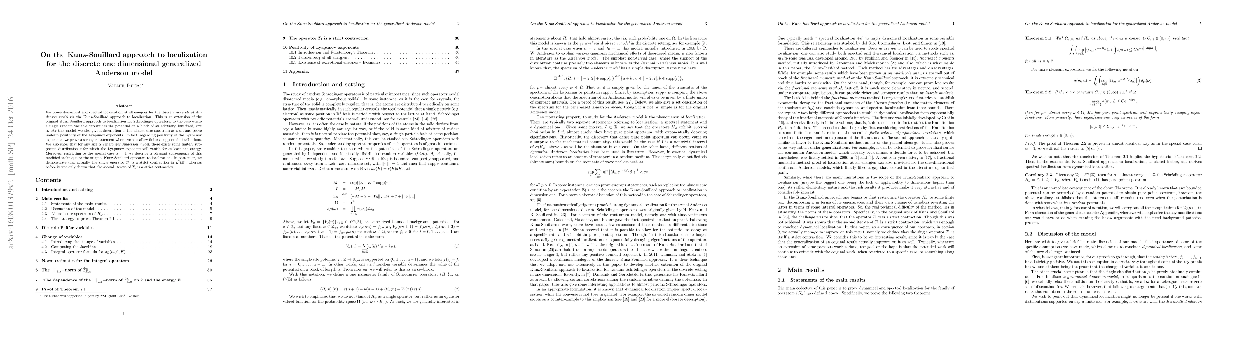 This paper extends the Kunz-Souillard localization approach to the discrete one-dimensional generalized Anderson model, proving dynamical and spectral localization at all energies. It also describes the almost sure spectrum and proves uniform positivity of Lyapunov exponents, while showing that for any block size, the Lyapunov exponent can vanish for at least one energy under certain distribution conditions.