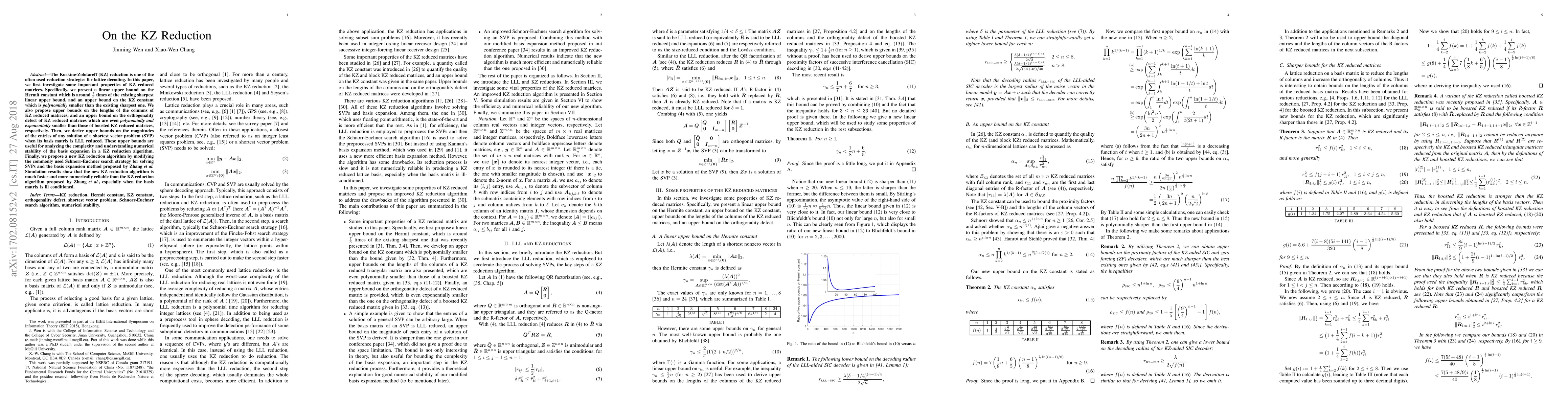 The Korkine-Zolotareff (KZ) reduction is one of the often used reduction strategies for lattice decoding. In this paper, we first investigate some important properties of KZ reduced matrices. Specifically, we present a linear upper bound on the Hermit constant which is around $\frac{7}{8}$ times of the existing sharpest linear upper bound, and an upper bound on the KZ constant which is {\em polynomially} smaller than the existing sharpest one. We also propose upper bounds on the lengths of the columns of KZ reduced matrices, and an upper bound on the orthogonality defect of KZ reduced matrices which are even {\em polynomially and exponentially} smaller than those of boosted KZ reduced matrices, respectively. Then, we derive upper bounds on the magnitudes of the entries of any solution of a shortest vector problem (SVP) when its basis matrix is LLL reduced. These upper bounds are useful for analyzing the complexity and understanding numerical stability of the basis expansion in a KZ reduction algorithm. Finally, we propose a new KZ reduction algorithm by modifying the commonly used Schnorr-Euchner search strategy for solving SVPs and the basis expansion method proposed by Zhang {\em et al.} Simulation results show that the new KZ reduction algorithm is much faster and more numerically reliable than the KZ reduction algorithm proposed by Zhang {\em et al.}, especially when the basis matrix is ill conditioned.