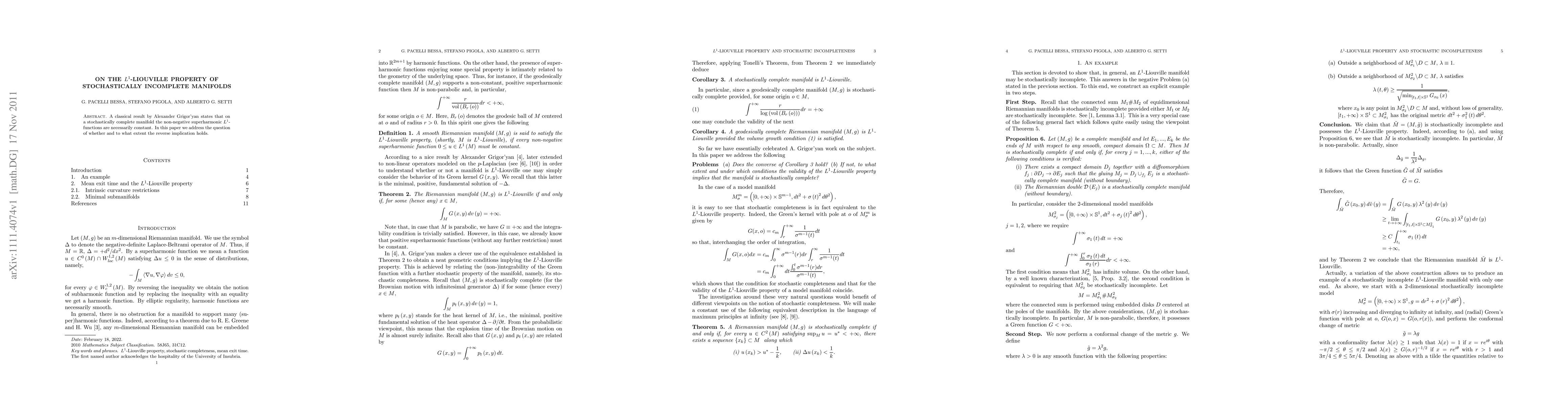 A classical result by Alexander Grigor'yan states that on a stochastically complete manifold the non-negative superharmonic $L^1$-functions are necessarily constant. In this paper we address the question of whether and to what extent the reverse implication holds.