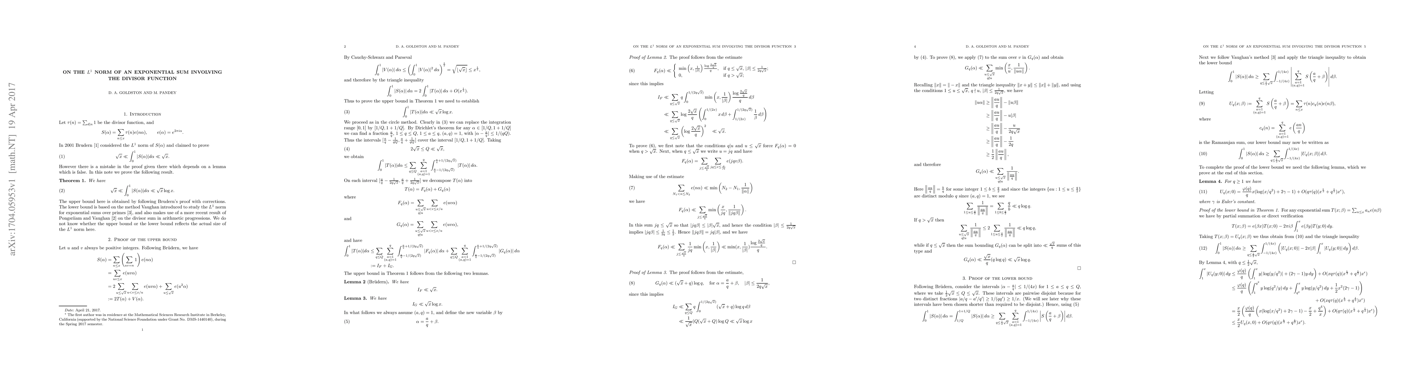 The research establishes new bounds on the L1 norm of an exponential sum involving the divisor function, which is a significant technical contribution to the field of number theory.
