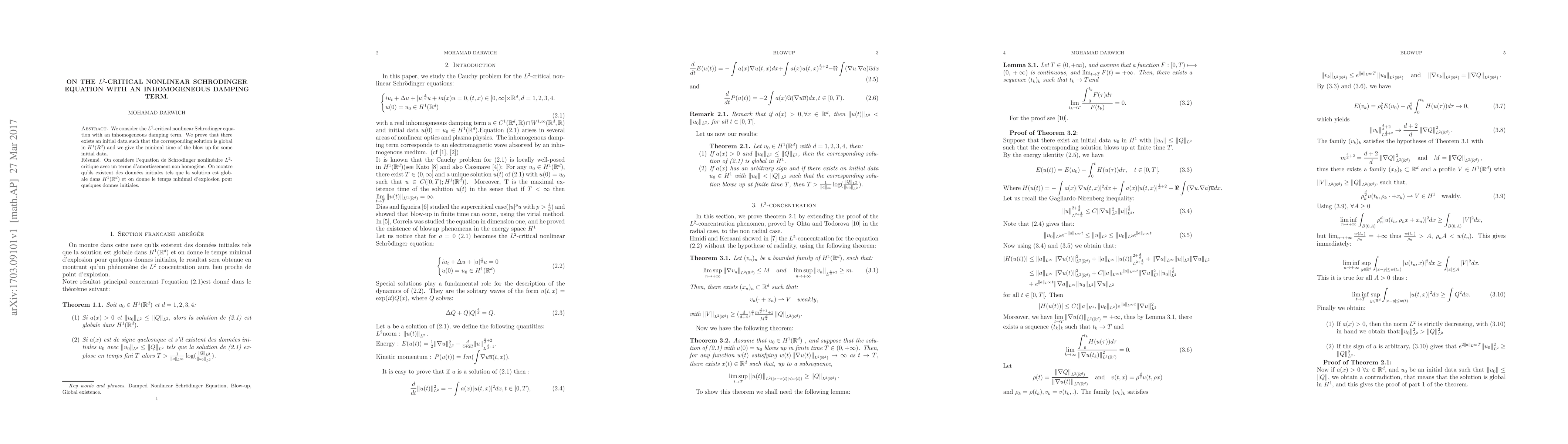 This paper investigates the $L^2$-critical nonlinear Schrödinger equation with an inhomogeneous damping term, proving the existence of global solutions in $H^1(R^d)$ and determining the minimal blow-up time for specific initial conditions.