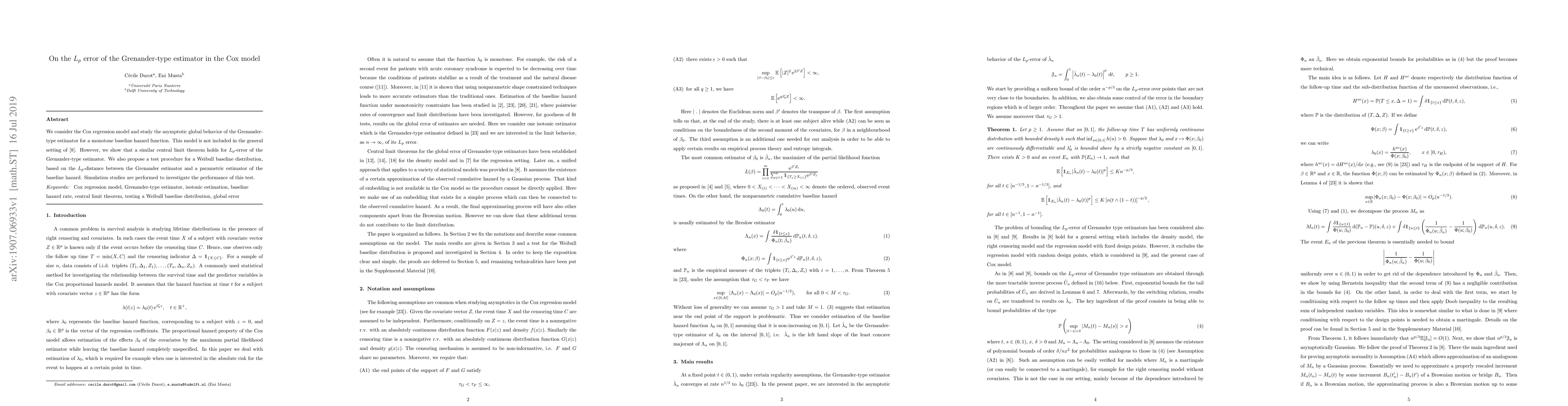 The research employs a detailed asymptotic analysis of the Grenander-type estimator in the Cox proportional hazards model, focusing on the $L_p$-error under a non-parametric setting.