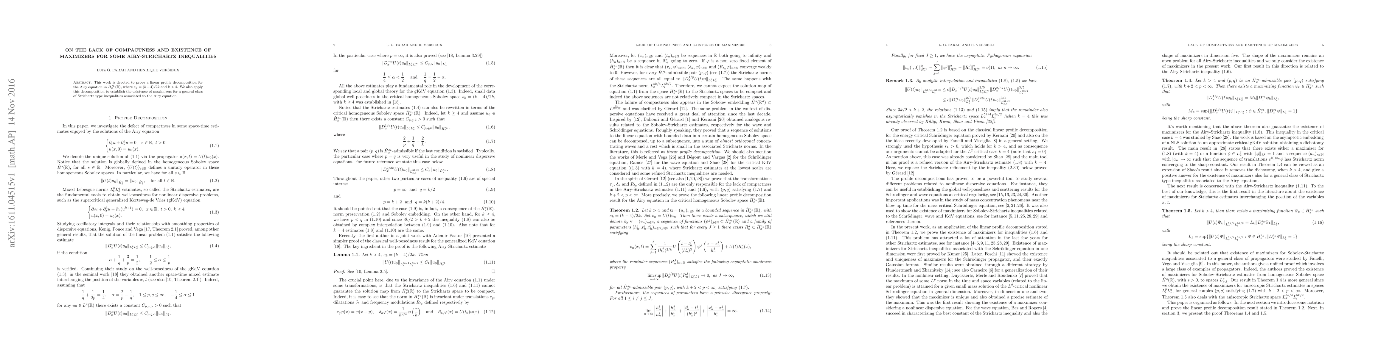 This paper proves a linear profile decomposition for the Airy equation in $\dot{H}_x^{s_k}(\mathbb{R})$ and uses this to establish the existence of maximizers for Strichartz inequalities related to the Airy equation.