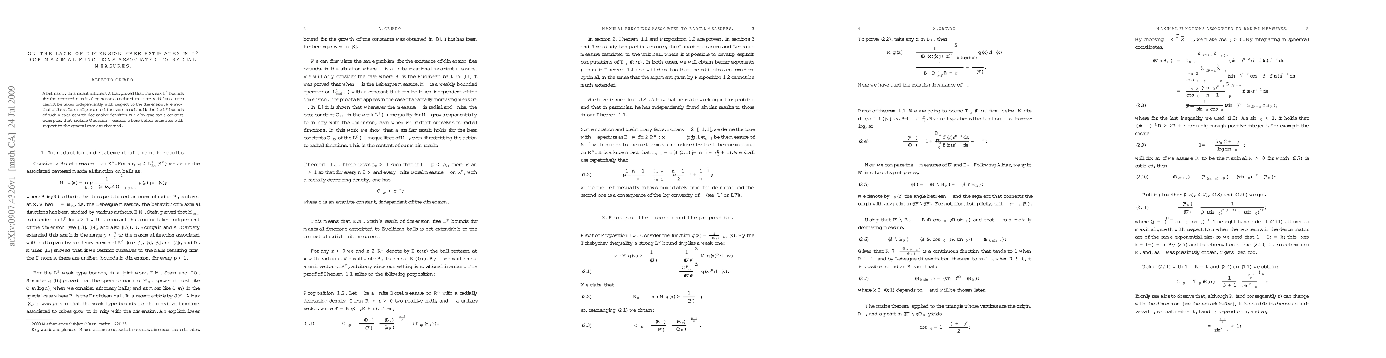 Researchers show that Lp bounds for maximal functions associated to radial measures cannot be dimension-free for small p near 1, even with decreasing densities. They also provide examples where better estimates can be obtained in specific cases.
