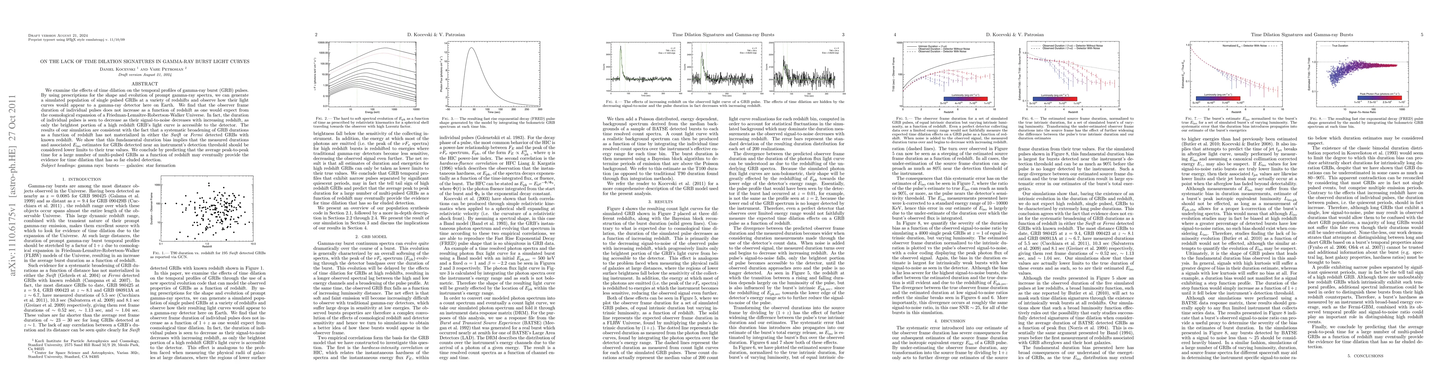 This paper investigates the absence of time dilation signatures in gamma-ray burst (GRB) light curves, finding that pulse durations do not increase with redshift as expected. Instead, the observed duration decreases due to signal-to-noise limitations, suggesting that current measurements are lower limits.