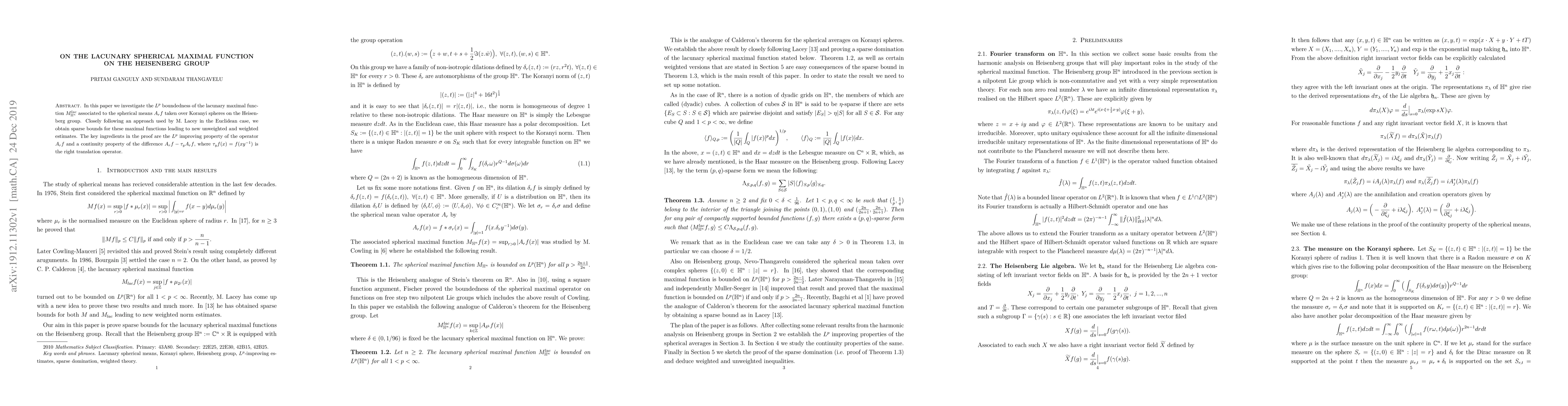 This paper investigates the $L^p$ boundedness of a maximal function associated with spherical means on the Heisenberg group, leading to new estimates using sparse bounds and key ingredients like operator improving property and right translation operators.