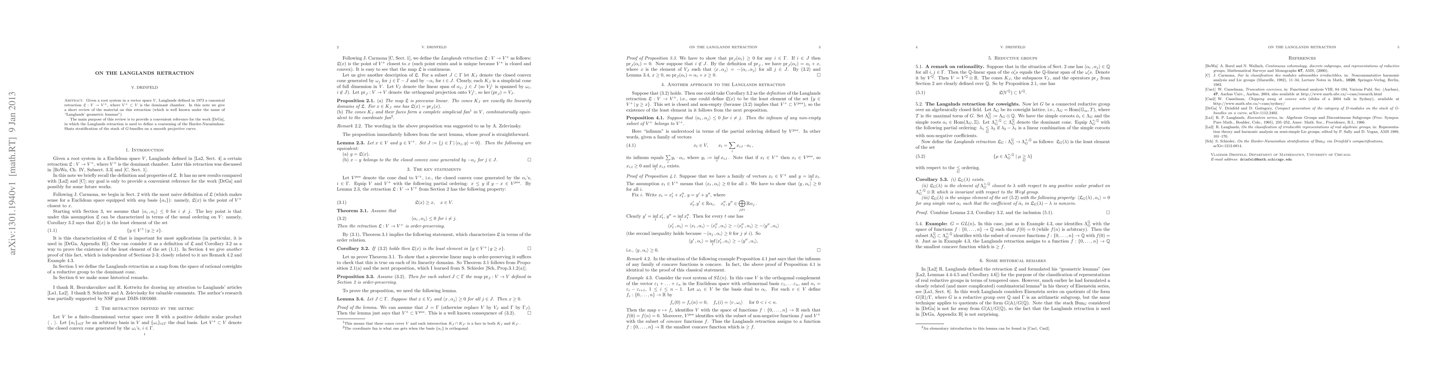 Given a root system in a vector space V, Robert Langlands defined in 1973 a canonical retraction of V onto the dominant chamber. In this note we give a short review of the material on this retraction (which is well known under the name of "Langlands' geometric lemmas"). The main purpose of this review is to provide a convenient reference for e-print arXiv:1112.2402 by D.Gaitsgory and me, in which the Langlands retraction is used to define a certain coarsening of the Harder-Narasimhan-Shatz stratification of the stack of G-bundles on a smooth projective curve.