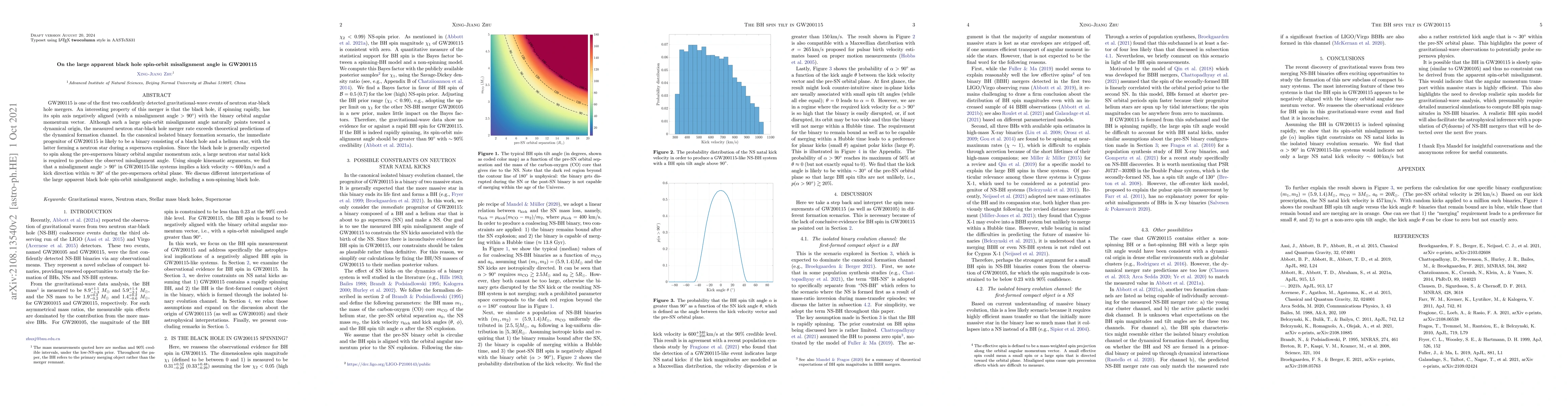 This paper investigates the large spin-orbit misalignment angle in the GW200115 neutron star-black hole merger, suggesting a dynamical origin. It finds that a kick velocity of around 600 km/s and a direction close to the pre-supernova orbital plane are required to explain the misalignment, challenging conventional isolated binary formation scenarios.