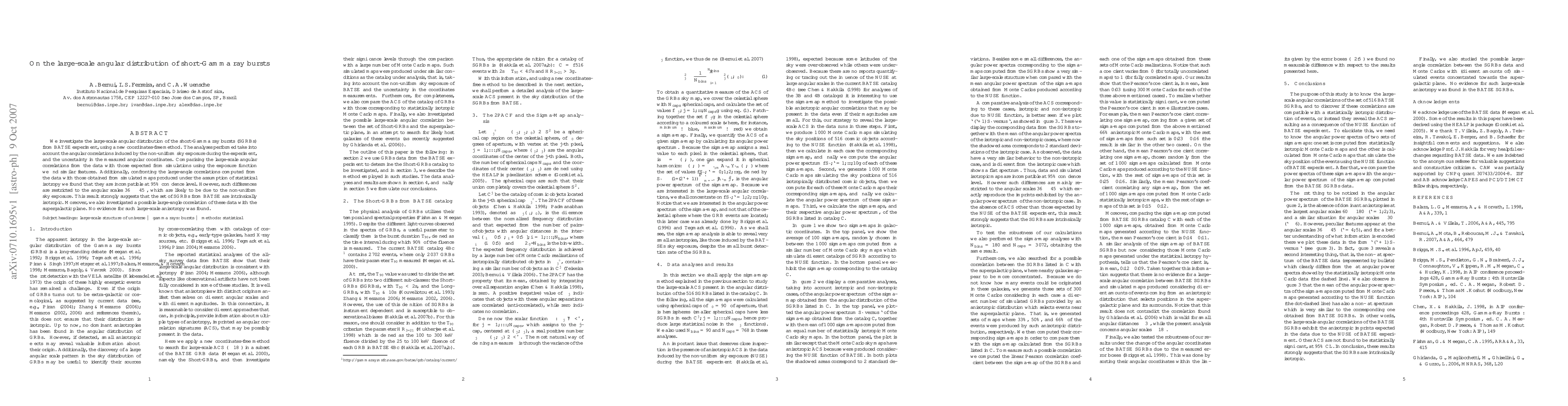 This study uses a new method to analyze the large-scale angular distribution of short-Gamma ray bursts (SGRBs) from the BATSE experiment, finding that SGRBs are intrinsically isotropic. No significant large-scale anisotropy was detected, except for minor discrepancies likely due to non-uniform sky exposure.