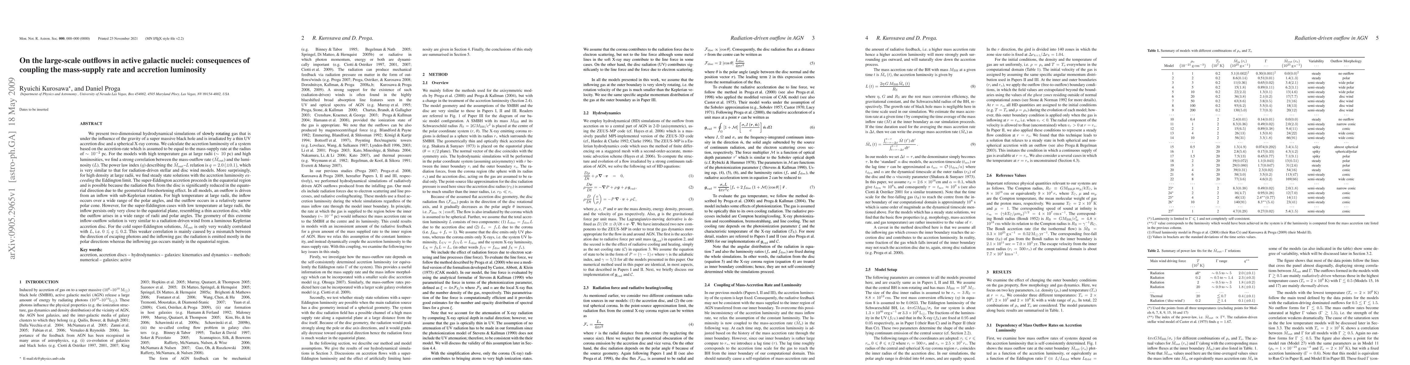 The research extends previous work by coupling mass-supply rate and accretion luminosity, uncovering new insights into the behavior of AGN outflows, particularly the possibility of super-Eddington accretion in the equatorial region due to geometrical foreshortening.