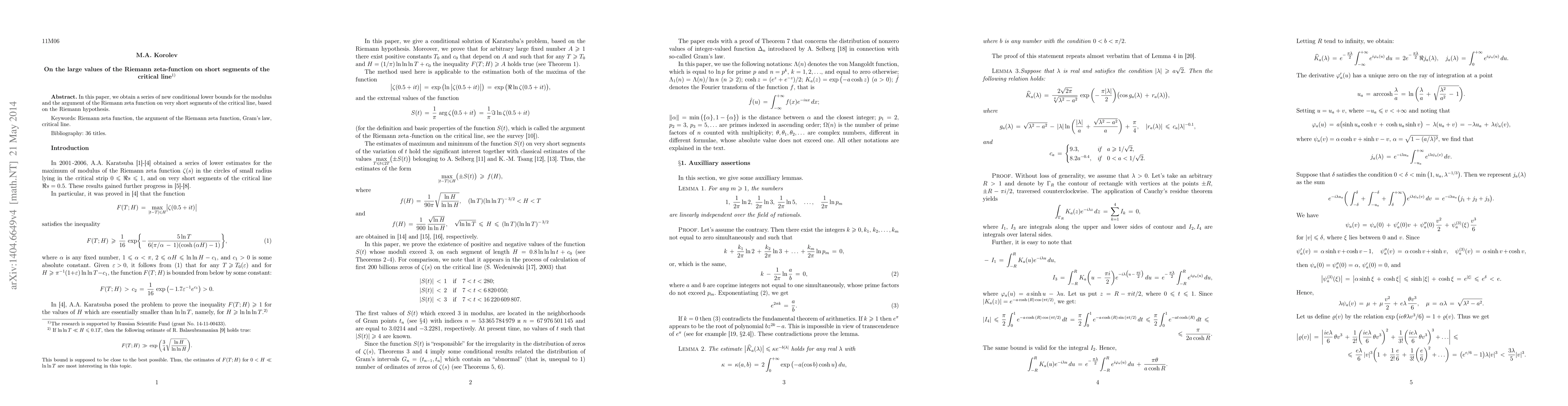 This paper provides new conditional lower bounds for the modulus and argument of the Riemann zeta function on short segments of the critical line, based on the Riemann hypothesis, solving a problem posed by A.A. Karatsuba. Typos from previous versions are corrected, and a reference to the Russian Scientific Fund grant is included.