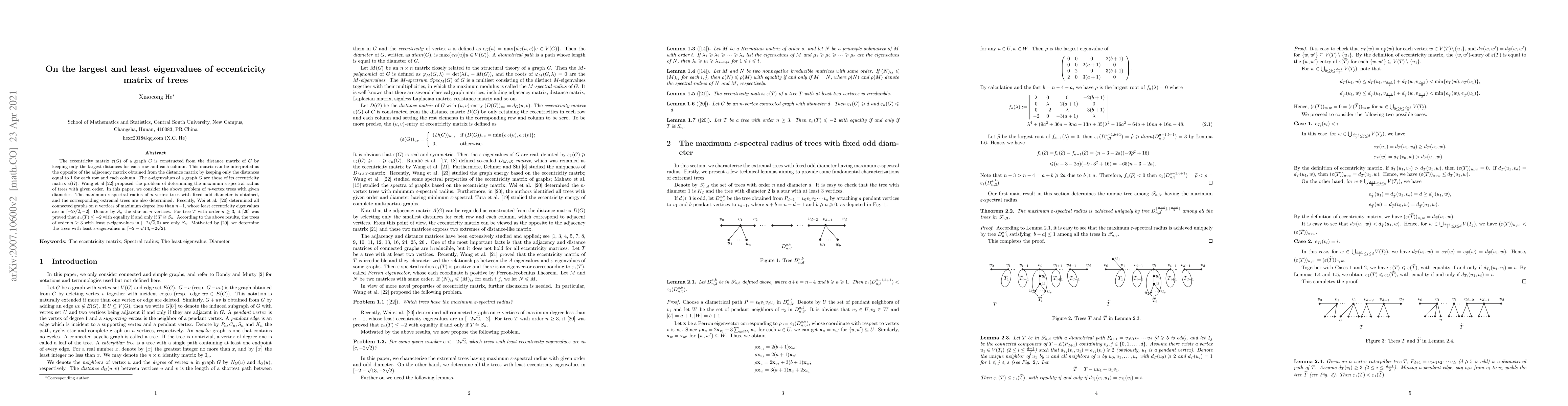 This paper investigates the largest and smallest eigenvalues of the eccentricity matrix of trees, focusing on trees with a fixed odd diameter. It determines the maximum $\varepsilon$-spectral radius and identifies the extremal trees, while also finding the trees with the smallest $\varepsilon$-eigenvalues in the interval $[-2-\sqrt{13}, -2\sqrt{2})$.