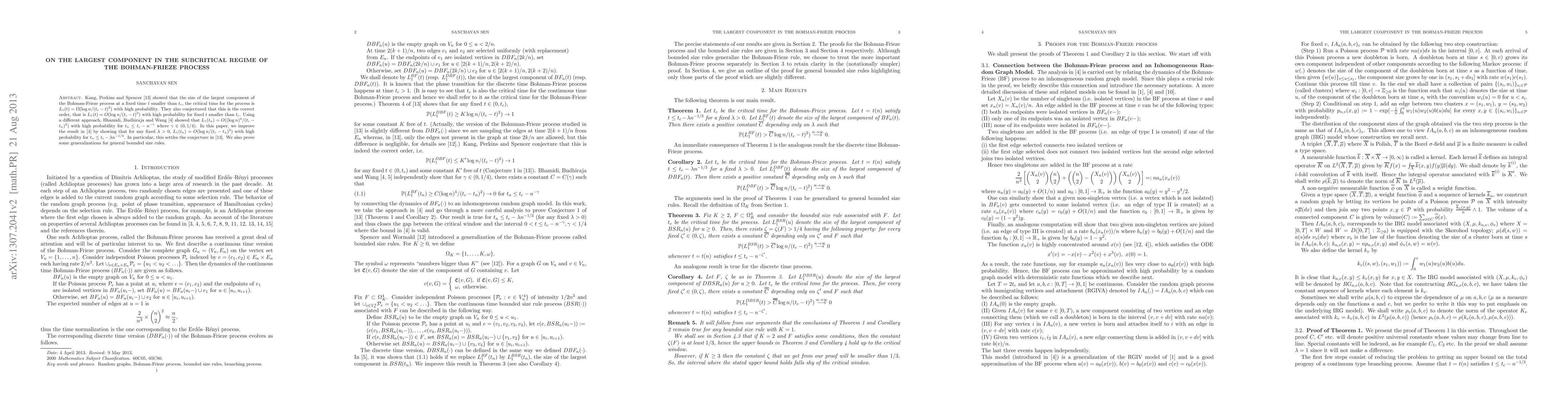 Kang, Perkins and Spencer showed that the size of the largest component of the Bohman-Frieze process at a fixed time $t$ smaller than $t_c$, the critical time for the process is $L_1(t)=\Omega(\log n/(t_c-t)^2)$ with high probability. They also conjectured that this is the correct order, that is $L_1(t)=O(\log n/(t_c-t)^2)$ with high probability for fixed $t$ smaller than $t_c$. Using a different approach, Bhamidi, Budhiraja and Wang showed that $L_1(t_n)=O((\log n)^4/(t_c-t_n)^2)$ with high probability for $t_n\leq t_c-n^{-\gamma}$ where $\gamma\in(0,1/4)$. In this paper, we improve their result by showing that for any fixed $\lambda>0$, $L_1(t_n)=O(\log n/(t_c-t_n)^2)$ with high probability for $t_n\leq t_c-\lambda n^{-1/3}$. In particular, this settles the conjecture of Kang, Perkins and Spencer. We also prove some generalizations for general bounded size rules.