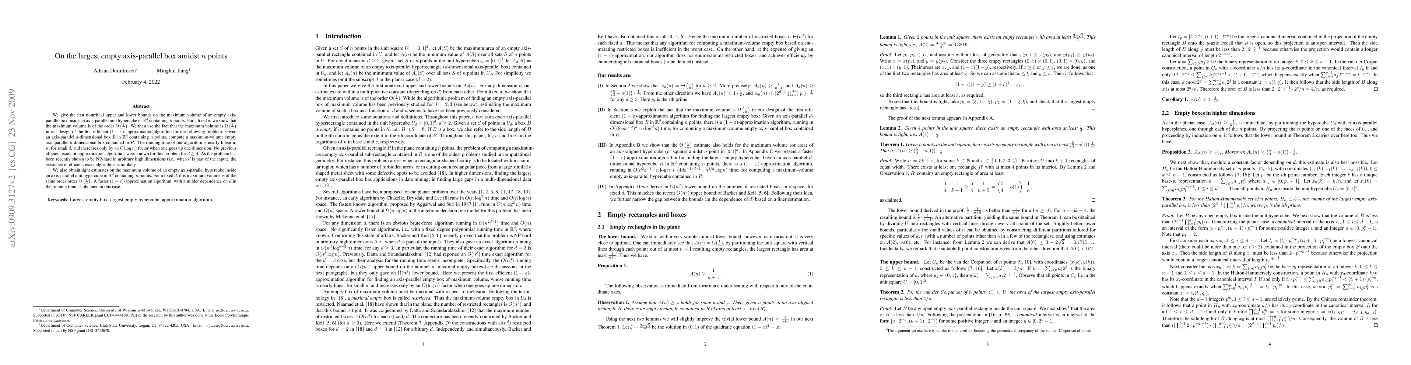 We give the first nontrivial upper and lower bounds on the maximum volume of an empty axis-parallel box inside an axis-parallel unit hypercube in $\RR^d$ containing $n$ points. For a fixed $d$, we show that the maximum volume is of the order $\Theta(\frac{1}{n})$. We then use the fact that the maximum volume is $\Omega(\frac{1}{n})$ in our design of the first efficient $(1-\eps)$-approximation algorithm for the following problem: Given an axis-parallel $d$-dimensional box $R$ in $\RR^d$ containing $n$ points, compute a maximum-volume empty axis-parallel $d$-dimensional box contained in $R$. The running time of our algorithm is nearly linear in $n$, for small $d$, and increases only by an $O(\log{n})$ factor when one goes up one dimension. No previous efficient exact or approximation algorithms were known for this problem for $d \geq 4$. As the problem has been recently shown to be NP-hard in arbitrary high dimensions (i.e., when $d$ is part of the input), the existence of efficient exact algorithms is unlikely. We also obtain tight estimates on the maximum volume of an empty axis-parallel hypercube inside an axis-parallel unit hypercube in $\RR^d$ containing $n$ points. For a fixed $d$, this maximum volume is of the same order order $\Theta(\frac{1}{n})$. A faster $(1-\eps)$-approximation algorithm, with a milder dependence on $d$ in the running time, is obtained in this case.