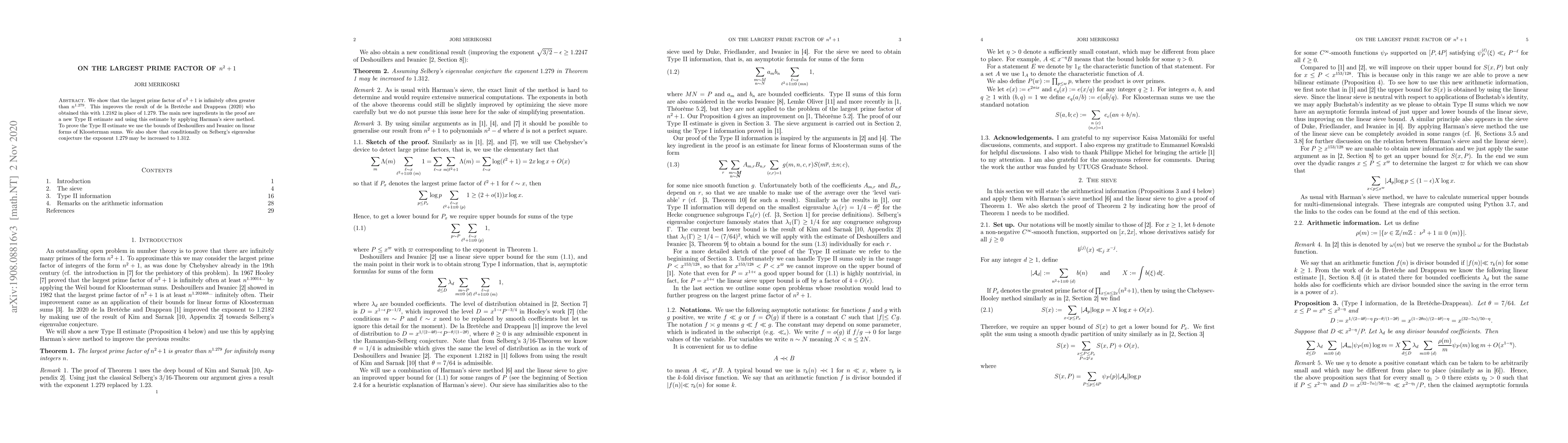Researchers prove that the largest prime factor of n^2+1 is infinitely often greater than a specific threshold, improving an earlier result and using new methods to estimate this limit.