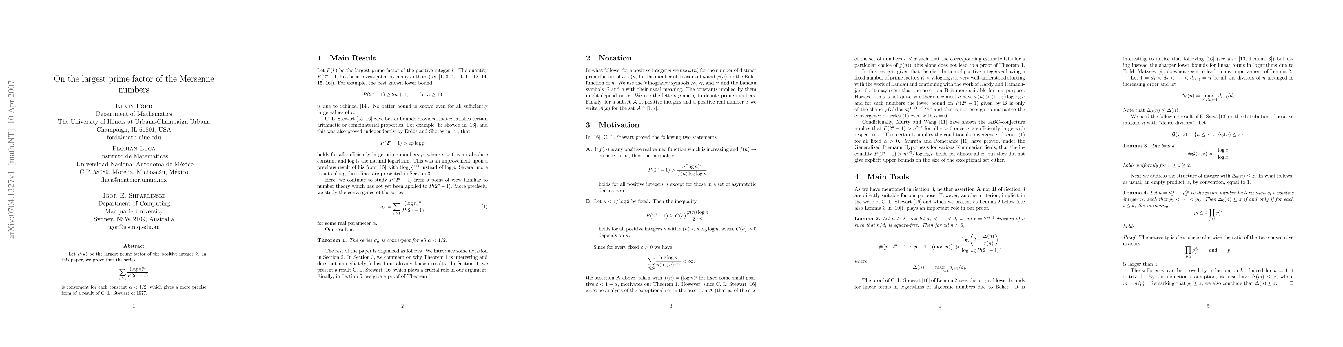 This paper proves that the series $\sum_{n\ge 1}\frac{(\log n)^a}{P(2^n-1)}$ converges for any constant $a<1/2$, refining a result from 1977 by C. L. Stewart on the largest prime factor of Mersenne numbers.