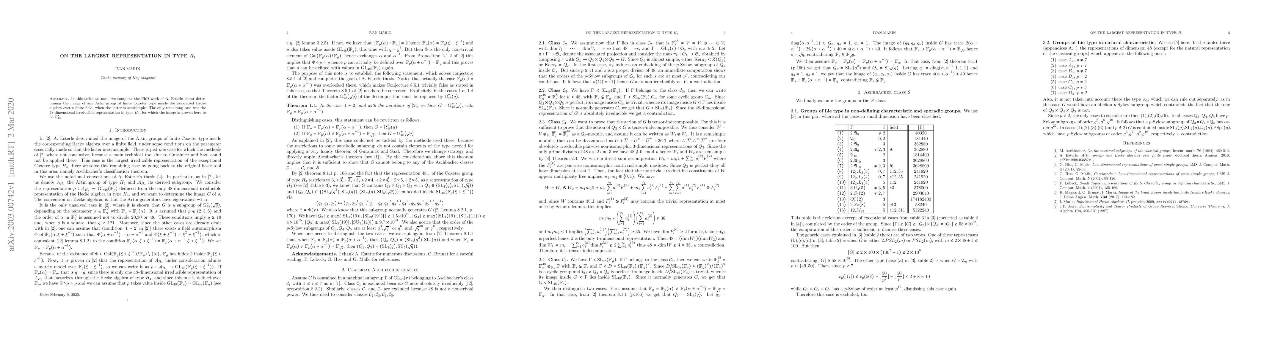 In this technical note, we complete the PhD work of A. Esterle about determining the image of any Artin group of finite Coxeter type inside the associated Hecke algebra over a finite field, when the latter is semisimple. The only remaining case was the 48-dimensional irreducible representation in type $H_4$, for which the image is proven here to be $\Omega_{48}^+$.