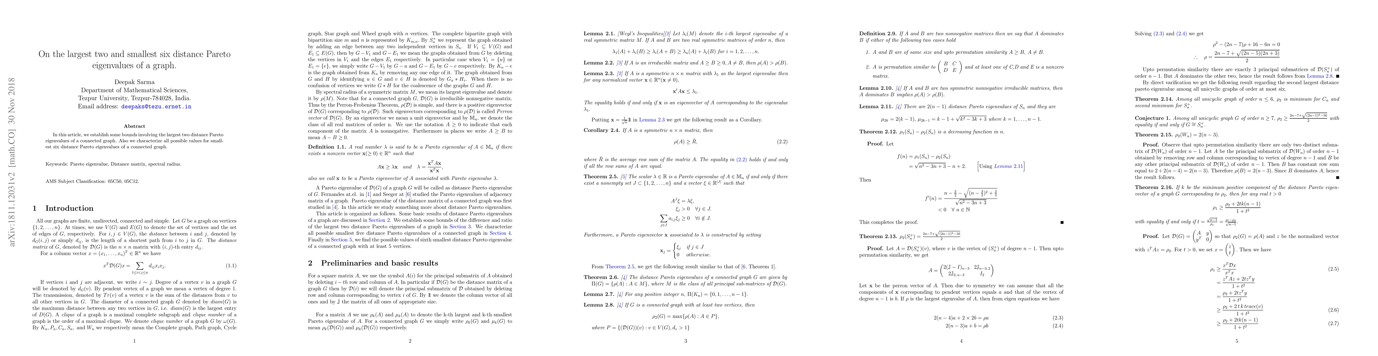 Summary: This paper sets bounds for the largest two distance Pareto eigenvalues in connected graphs and identifies all possible values for the smallest six distance Pareto eigenvalues. The findings provide deeper insights into the spectral properties of graph distances.