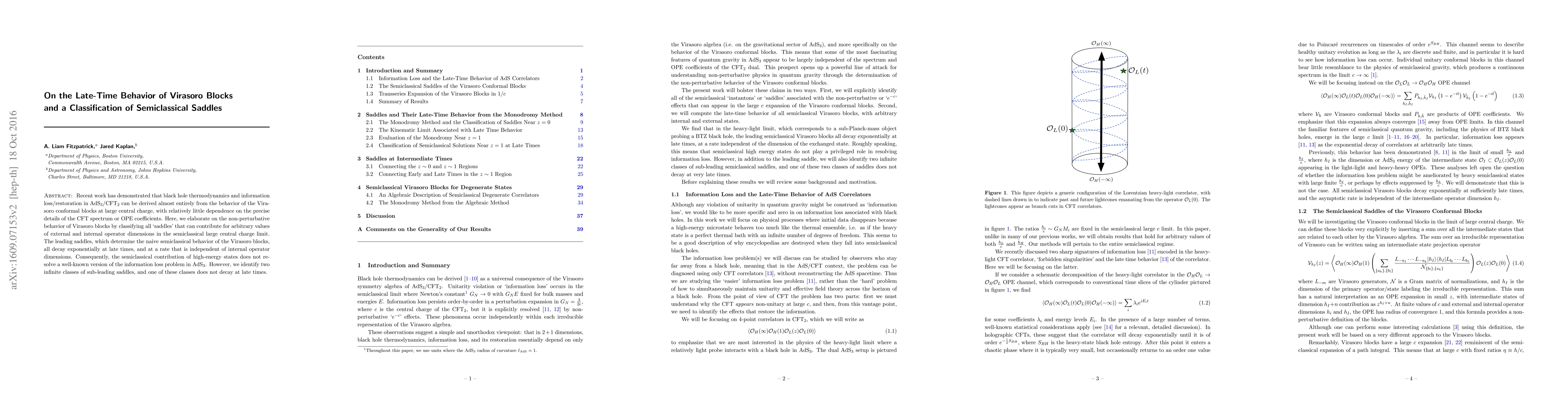 Recent work has demonstrated that black hole thermodynamics and information loss/restoration in AdS$_3$/CFT$_2$ can be derived almost entirely from the behavior of the Virasoro conformal blocks at large central charge, with relatively little dependence on the precise details of the CFT spectrum or OPE coefficients. Here, we elaborate on the non-perturbative behavior of Virasoro blocks by classifying all `saddles' that can contribute for arbitrary values of external and internal operator dimensions in the semiclassical large central charge limit. The leading saddles, which determine the naive semiclassical behavior of the Virasoro blocks, all decay exponentially at late times, and at a rate that is independent of internal operator dimensions. Consequently, the semiclassical contribution of high-energy states does not resolve a well-known version of the information loss problem in AdS$_3$. However, we identify two infinite classes of sub-leading saddles, and one of these classes does not decay at late times.