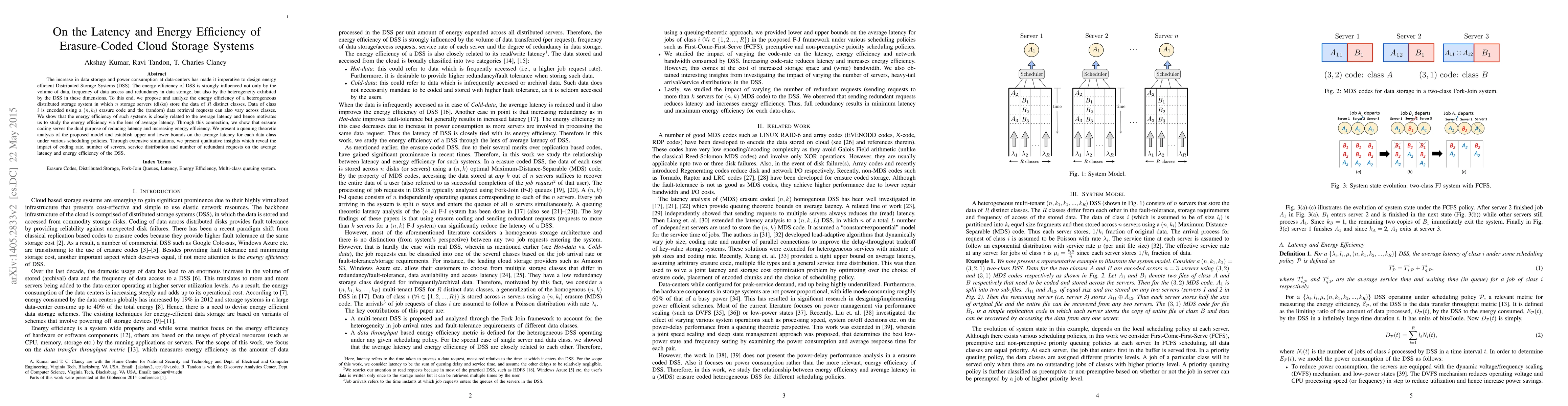 This paper investigates the latency and energy efficiency of erasure-coded cloud storage systems, finding that erasure coding serves both purposes and providing insights into its impact on performance.