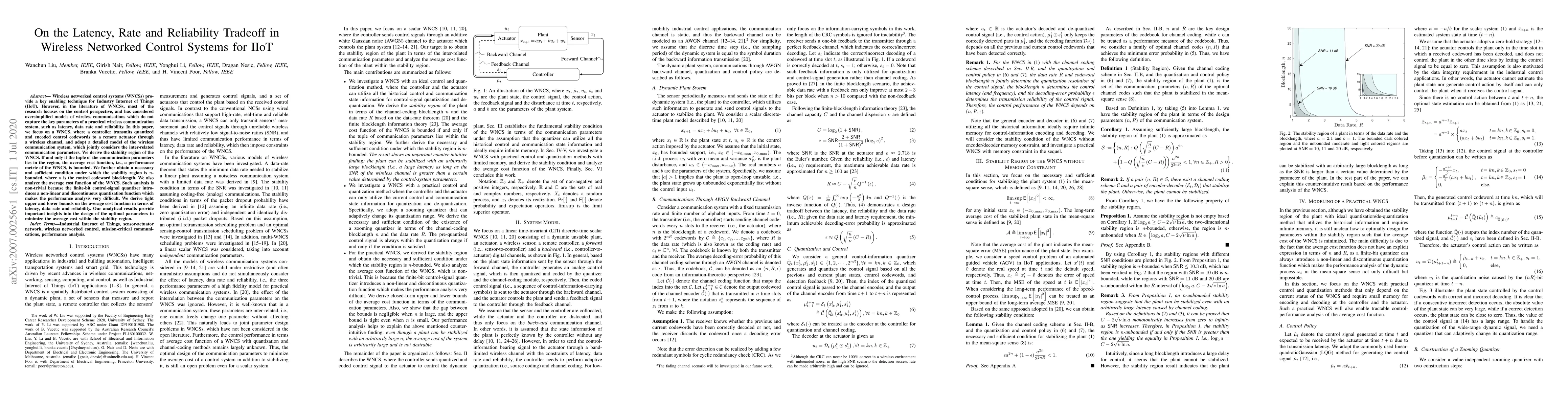 This paper investigates the latency, rate, and reliability tradeoff in wireless networked control systems (WNCSs) for Industry Internet of Things (IIoT). It derives the stability region and necessary conditions for bounded average cost, providing insights into optimal parameter design to minimize performance metrics within the stability region.