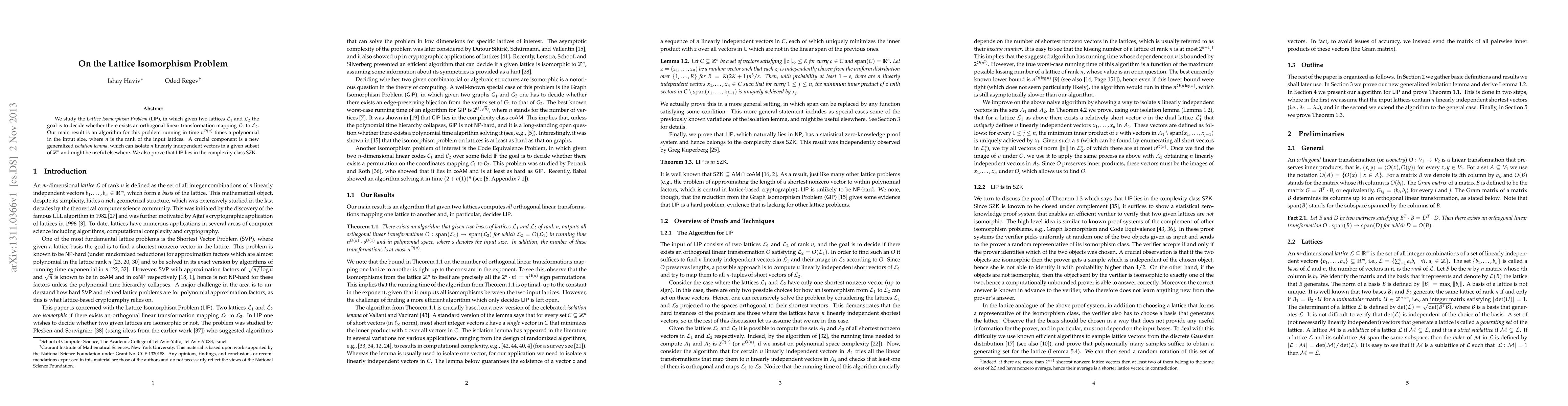 We study the Lattice Isomorphism Problem (LIP), in which given two lattices L_1 and L_2 the goal is to decide whether there exists an orthogonal linear transformation mapping L_1 to L_2. Our main result is an algorithm for this problem running in time n^{O(n)} times a polynomial in the input size, where n is the rank of the input lattices. A crucial component is a new generalized isolation lemma, which can isolate n linearly independent vectors in a given subset of Z^n and might be useful elsewhere. We also prove that LIP lies in the complexity class SZK.