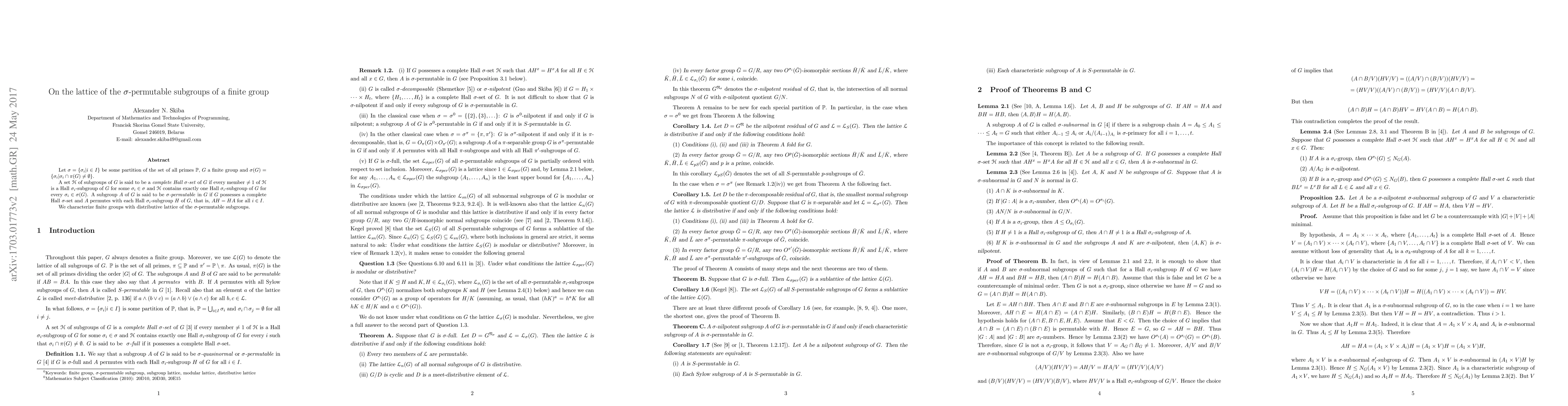 Let $\sigma =\{\sigma_{i} | i\in I\}$ be some partition of the set of all primes $\Bbb{P}$, $G$ a finite group and $\sigma (G) =\{\sigma_{i} |\sigma_{i}\cap \pi (G)\ne \emptyset \}$. A set ${\cal H}$ of subgroups of $G$ is said to be a complete Hall $\sigma $-set of $G$ if every member $\ne 1$ of ${\cal H}$ is a Hall $\sigma_{i}$-subgroup of $G$ for some $\sigma_{i}\in \sigma $ and ${\cal H}$ contains exactly one Hall $\sigma_{i}$-subgroup of $G$ for every $\sigma_{i}\in \sigma (G)$. A subgroup $A$ of $G$ is said to be ${\sigma}$-permutable in $G$ if $G$ possesses a complete Hall $\sigma $-set and $A$ permutes with each Hall $\sigma_{i}$-subgroup $H$ of $G$, that is, $AH=HA$ for all $i \in I$. We characterize finite groups with distributive lattice of the ${\sigma}$-permutable subgroups.