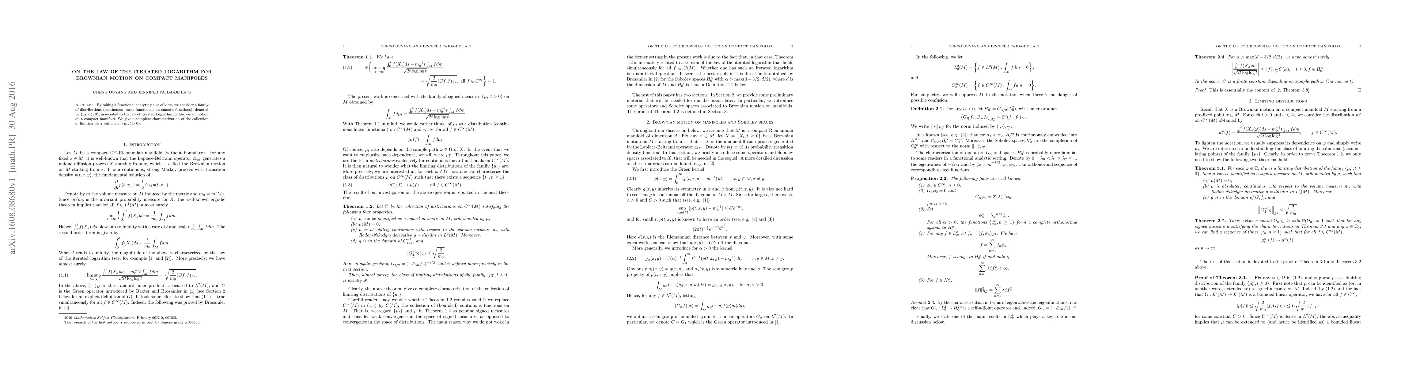 Summary: This paper characterizes the limiting distributions of a family of continuous linear functionals associated with the law of the iterated logarithm for Brownian motion on compact manifolds, using a functional analytic approach. The complete set of these limiting distributions is identified.