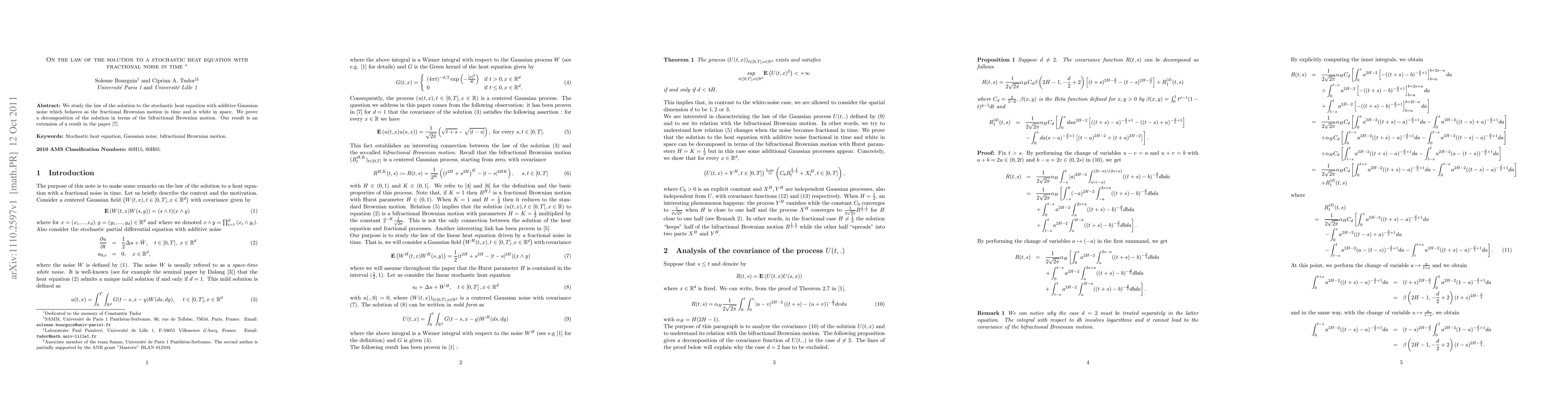 This paper investigates the solution behavior of a stochastic heat equation driven by fractional Brownian motion in time. The authors provide a decomposition of the solution in terms of bifractional Brownian motion.