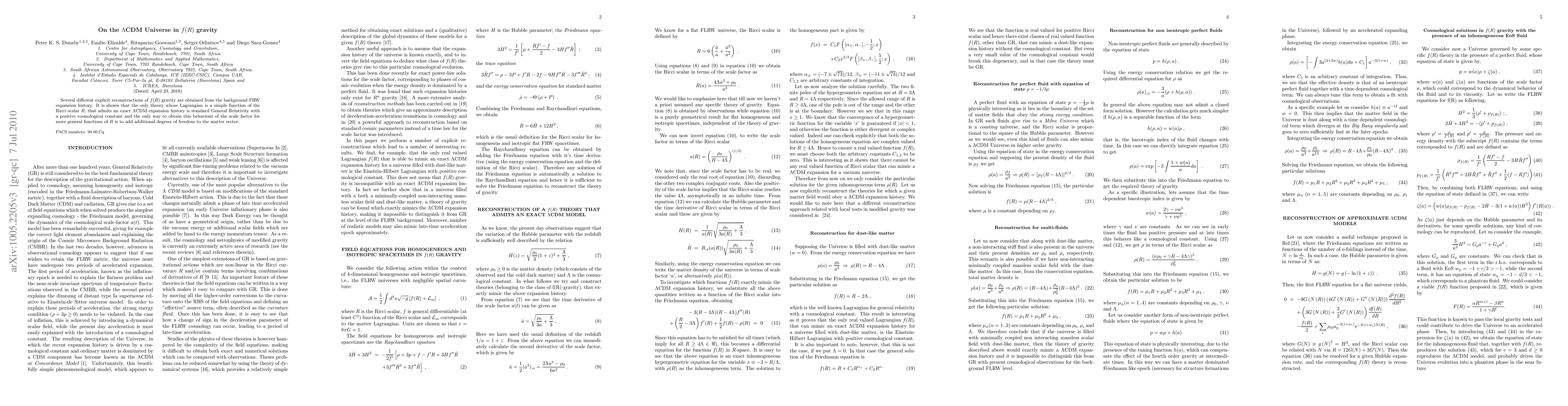 Several different explicit reconstructions of f(R) gravity are obtained from the background FRW expansion history. It is shown that the only theory whose Lagrangian is a simple function of the Ricci scalar R, that admits an exact LCDM expansion history is standard General Relativity with a positive cosmological constant and the only way to obtain this behaviour of the scale factor for more general functions of R is to add additional degrees of freedom to the matter sector.
