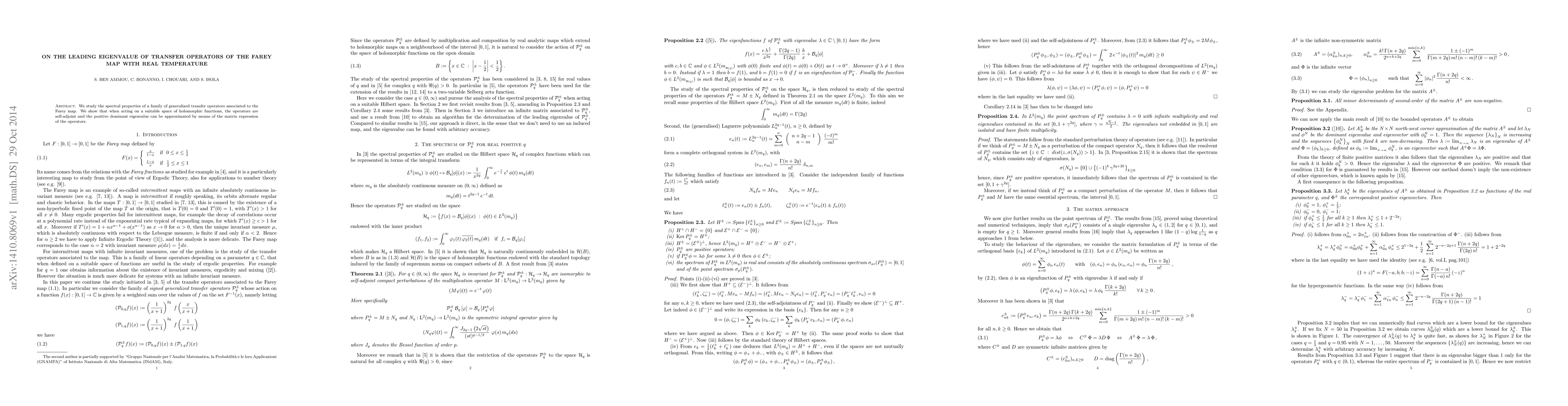 This paper studies the spectral properties of a generalized transfer operator associated with the Farey map, finding that it is self-adjoint and its dominant eigenvalue can be approximated through matrix expression.