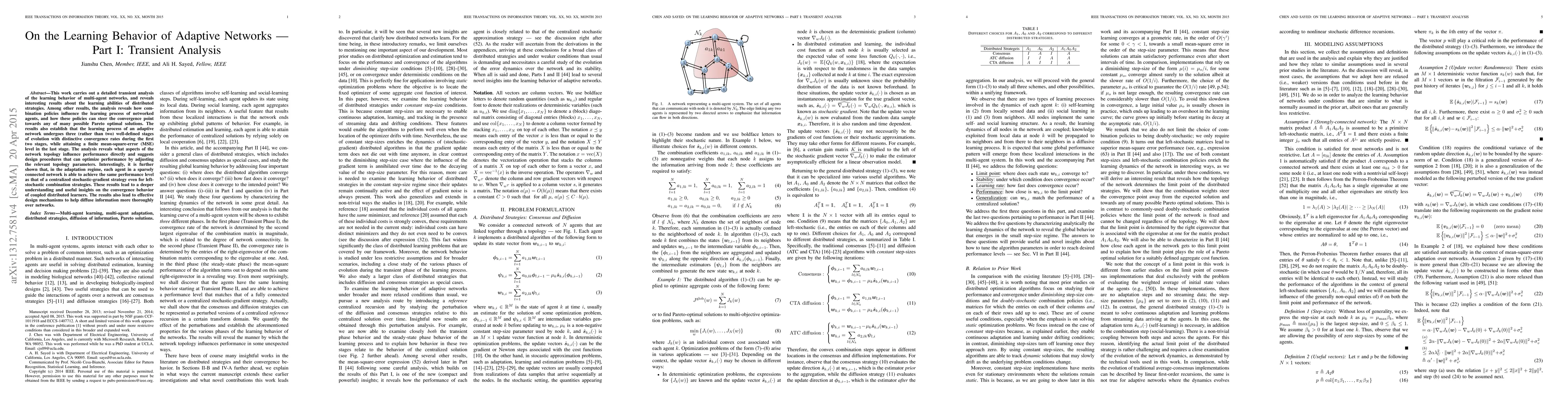 This paper conducts a transient analysis of multi-agent networks, revealing that adaptive networks undergo three distinct learning stages and that combination policies can guide convergence to Pareto optimal solutions. It also demonstrates that sparsely connected networks can achieve centralized strategy performance levels, offering insights into distributed learning convergence and network design optimization.